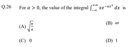 4. Section – C contains a total of 20 Numerical Answer Type (NAT) questions. For these NAT type questions, the answer is a real number which needs to be entered using the virtual keyboard on the monitor. No choices will be shown for these type of questions. Questions Q.41 – Q.60 belong to this section and carry a total of 30 marks. Q.41 – Q.50 carry 1 mark each and Questions Q.51 – Q.60 carry 2 marks each.