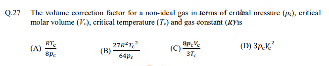 Q.49 Adsorption of a toxic gas on 1.0 g activated charcoal is 0.75 cm3 both at 2.5 atm, 140 K